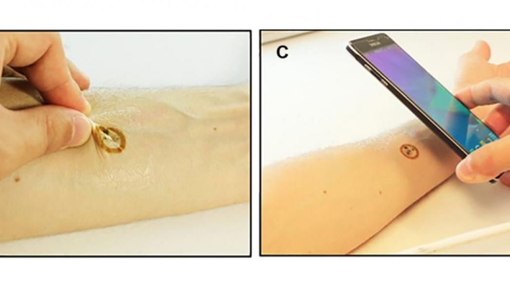 Ученые из Иллинойского университета (США) разработали новый сверхтонкий и гибкий сенсор, предназначенный для мониторинга показателей здоровья, который получает питание беспроводным способом от смартфона путем использования NFC-коммуникации*. За счет этого исследователи смогли создать устройство, которое в 5 - 10 раз тоньше аналогов по функциональности, что существенно увеличивает удобство его использования и, следовательно, желание людей его использовать. Т.е. сенсор представляет собой очень тонкий, практически незаметный пленочный "пластырь", который не имеет проводов и почти не имеет толщины, который может использоваться неделями, будучи практически интегрированным с кожей.