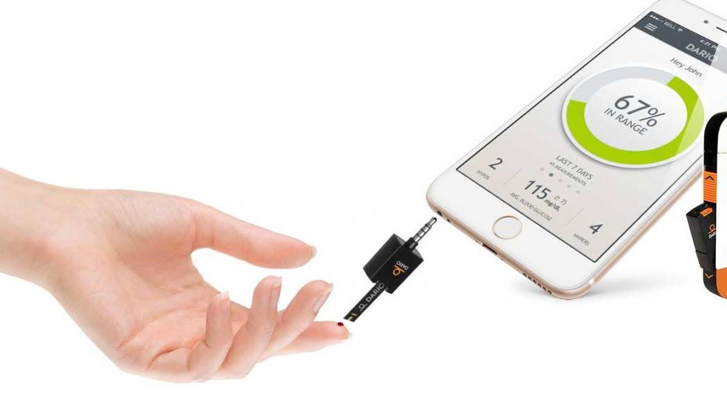 Израильская компания DarioHealth начала продажи на территории США своего глюкометра Dario, который работает напрямую со смартфоном, подключившись к нему через разъем наушников и поручив всю обработку информации специализированному приложению на телефоне.