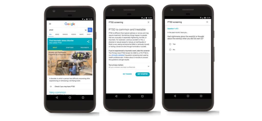 Для того, чтобы помочь людям понять, что у них ПТСР, компания Google совместно с Национальным альянсом психических заболеваний США и Национальным центром ПТСР при Департаменте по делам ветеранов (США) разработала решение, обеспечивающее простой и прямой доступ к информации, касающейся этого заболевания.