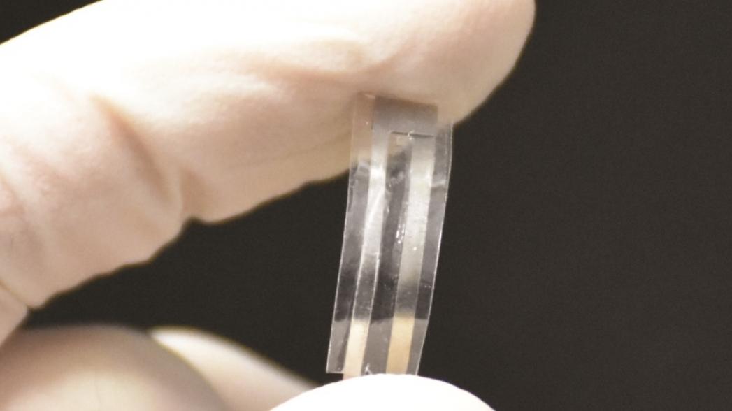 Ученые создали свой сенсор, используя молибденовые электроды и полилактид*, которые являются биосовместимыми и биоразлагаемыми материалами, но обычно не обладают подходящими электрическими свойствами для датчиков давления. Используя процесс нагревания и растяжения, исследователи смогли молекулярно изменить полилактид таким образом, чтобы он производил электрический заряд при сжатии. Такая способность материала называется пьезоэлектричество, и она обычно является ключевым свойством для использования в датчиках давления, которые должны передавать сигнал, когда деформируются при движениях тканей тела.