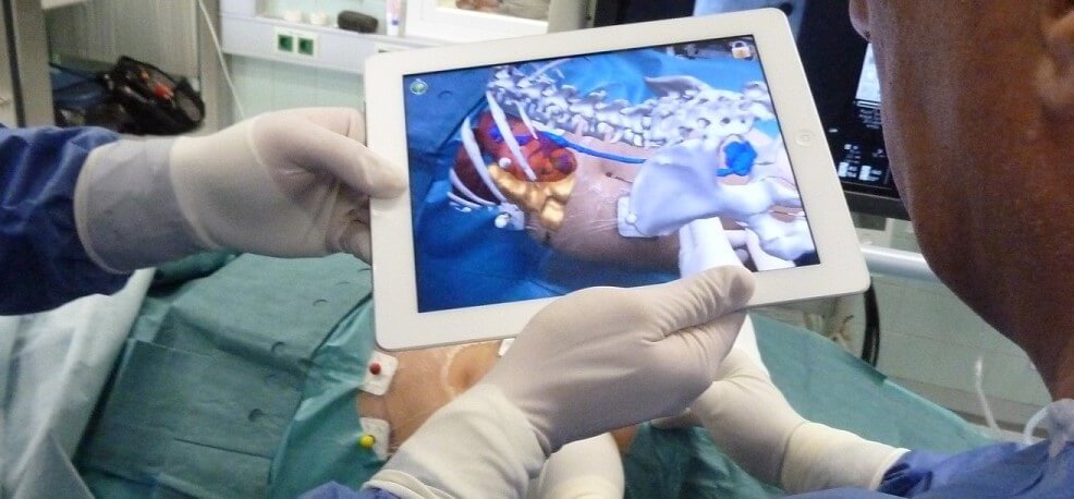 - Медицинское обучение, в первую очередь - хирургическое. Сегодня уже несколько компаний предлагают свои продукты на базе технологий виртуальной реальности, которые предназначены для обучения хирургов, начиная от планирования операций и заканчивая репетициями собственно операции. Возможности объединения медицинских изображений, полученных с помощью разных технологий и разного оборудования, обеспечивают врачей возможностью изучения трехмерных моделей пациентов и отдельных органов, к которым можно получать доступ и просматривать со всех сторон с помощью технологии дополненной реальности (обычно на экране компьютера) или виртуальной реальности (обычно с помощью головных устройств).