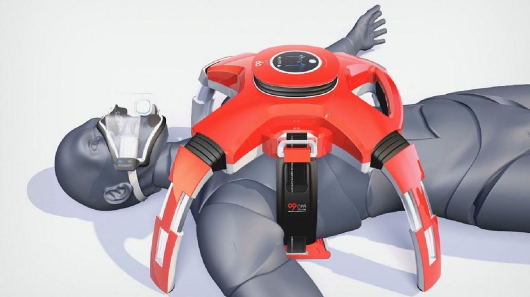Система для оказания первой помощи при сердечно-легочной реанимации CPR First Aider ставит своей целью повышение шансов пострадавшего человека на выживание. Это устройство не только помогает людям, которые не знают, как делать искусственное дыхание, но и дает возможность тем, кто это умеет, выполнять эту процедуру эффективно. CPR First Aider - это набор, включающий в себя дыхательную маску, которая автоматически подает кислород, помогая пациенту дышать, а также модуль сердечно-легочной реанимации, который имеет 4 "ноги" и грудные ремни для обеспечения стабильного, устойчивого и эффективного давления на пациента. Небольшой экран в верхней части позволяет подсказывать человеку, оказывающего помощь, как правильно проводить процедуру, а также в режиме реального времени отображает данные концентрации кислорода в крови пациента и электрокардиограмму. Разработанный для складывания в компактное устройство, аппарат первой помощи при сердечно-лёгочной реанимации можно легко хранить в любом месте.