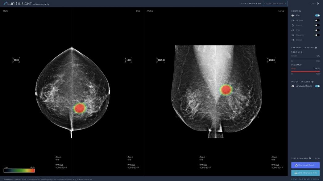 В феврале этого года исследование, проведенное специалистами Lunit в нескольких корейских больницах, продемонстрировало преимущества обнаружения рака молочной железы с помощью программного обеспечения на базе искусственного интеллекта по снимкам, полученным с помощью маммографии. Система, по сравнению с рентгенологами, демонстрирует лучшую чувствительность при обнаружении рака (90% против 78%).