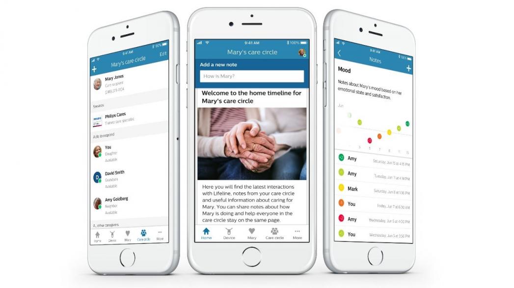 Существующие продукты Philips Lifeline для пожилых людей включают GoSafe - носимое устройство, которое позволяет отслеживать местоположение пользователя, обнаруживать падения и обеспечивать двустороннюю связь, систему медицинского оповещения HomeSafe и устройство автоматического дозирования (диспенсер) лекарственных средств в домашних условиях. Philips Cares интегрирует все эти продукты в единый интерфейс, который позволяет, например, членам семьи просматривать характеристики мобильности своих пожилых подопечных или соблюдение режима приема лекарств. Эти записи могут просматриваться несколькими членами семьи или другими опекунами, которые также могут вручную добавлять заметки или напоминания, чтобы помочь координировать уход.