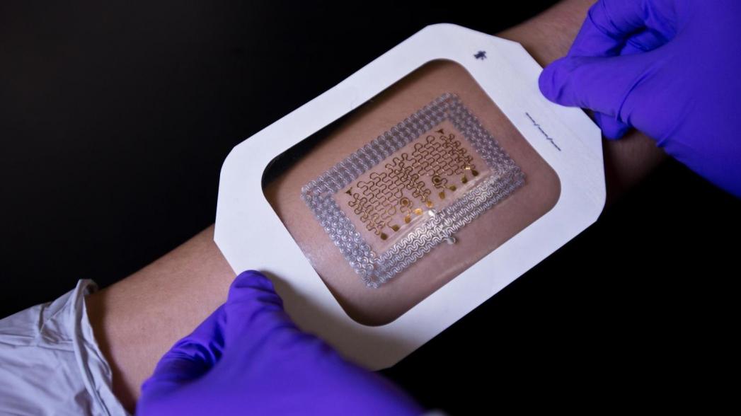 Гибкая и растягивающаяся электроника - технология, которую многие рассматривают в качестве замены носимых устройств в сфере мониторинга здоровья. Одноразовые устройства, которые прикрепляются к коже наподобие временной татуировки, позволяют сделать контроль параметров здоровья удобным и незаметным. На базе этой технологии уже разработано несколько сенсоров разного типа.
