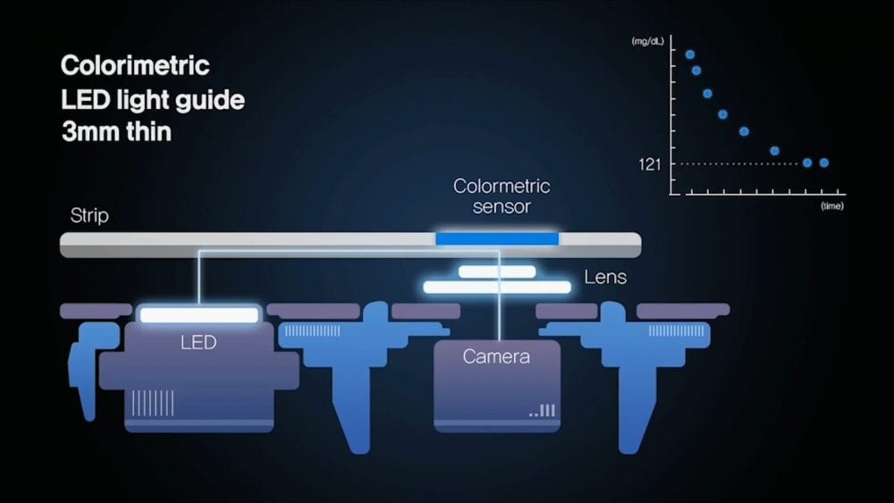 При работе устройства используются дешевые одноразовые сенсоры (тестовые полоски), изготовленные из бумаги. Сам процесс измерений, который проводится при помощи мобильного приложения на смартфоне, очень прост - в заднюю панель в нишу, находящуюся напротив камеры смартфона, вставляется тестовая полоска, на нее наносится капелька крови, взятой из пальца традиционным способом с помощью ланцета, с помощью приложения запускается процесс анализа и через некоторое время на экране появляется результат.