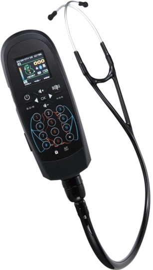 - Создание карты органов при прослушивании. Во время аускультации врачом определенного органа человека его положение автоматически записывается. Стетоскоп оперирует 32 позициями четырех органов, включая 6 позиций для шеи, 5 для сердца, 12 для передней и задней части груди, 9 для живота. Позиции выбираются путем прокрутки соответствующих изображений на экране устройства и нажатия кнопки.