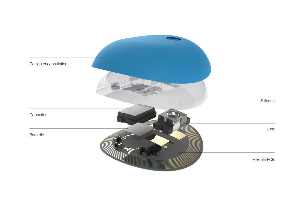 Этот сверхминиатюрный трекер, имеющий размеры 9 мм в диаметре и 2 мм в толщину, приклеивается на ноготь и похож на модный образец "ногтевого искусства". Причем он может закрепляться поверх обычного лака для ногтей и сохраняться на своем месте до двух недель, даже если вы в это время купаетесь в море, принимаете душ или работаете.