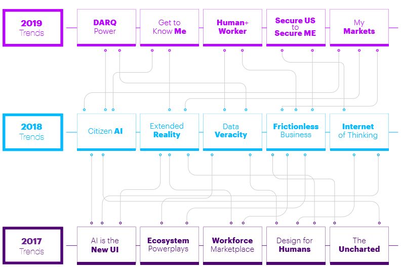 В отчете отмечаются пять технологических тенденций, которые создают основу для постцифровой эпохи.