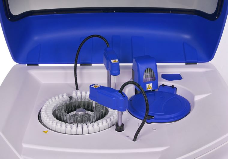 Устройство автоматически считывает и распределяет снабженные штриховым кодом сосуды с реагентами и пробирки с образцами. Кроме того, система может автоматически осуществлять перезапуск и разбавление образцов.