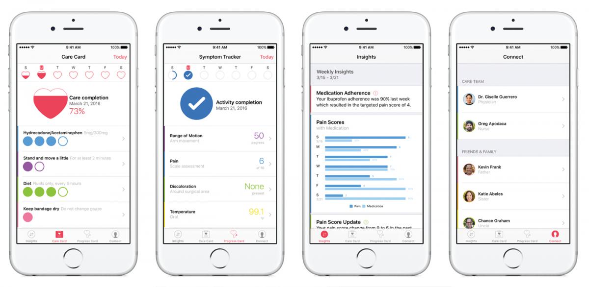 Компания Apple анонсировала свой пакет разработчика на базе открытого кода для создания медицинских приложений CareKit еще в марте. И вот вчера эта система стала доступна для разработчиков, правда, три компании получили доступ раньше и успели к этому времени создать свои продукты на базе CareKit.