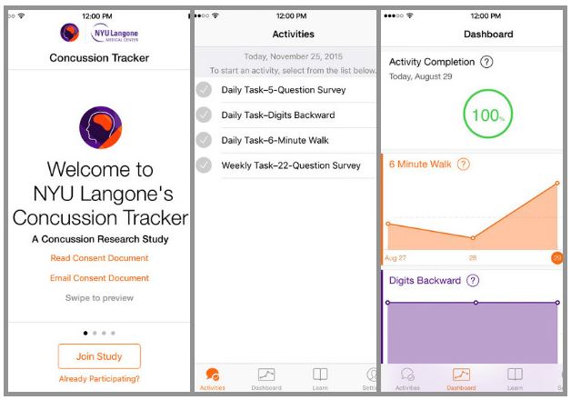 В последнее время все чаще появляются приложения, предназначенные для контроля и лечения проблем, связанных с заболеваниями и травмами мозга, которые разрабатываются медицинскими специалистами в этой сфере. Еще один такой программный инструмент, приложение Concussion Tracker, разработанный в нью-йоркском университете, предназначен для отслеживания физических и когнитивных функций мозга после сотрясения мозга, а также обнаружения постоянных последствий после сотрясения. При этом приложение, как подчеркивают его авторы, не является диагностическим средством.