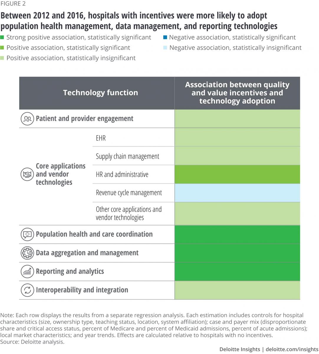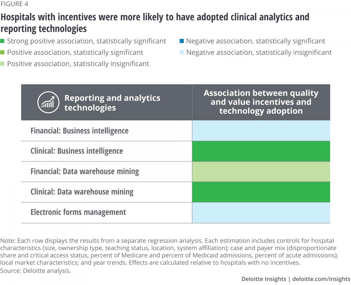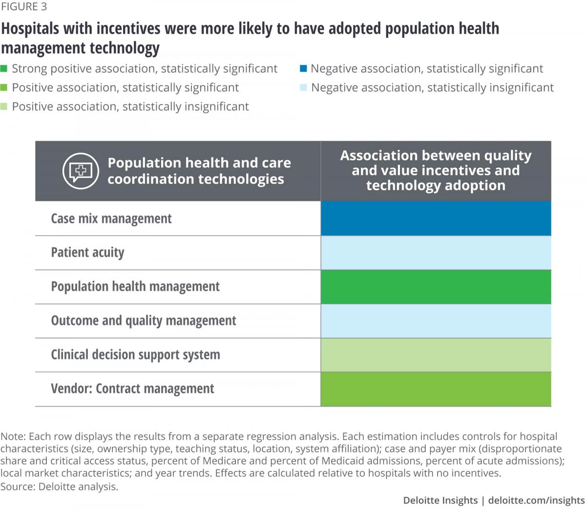 Новое исследование, проведенное компанией Deloitte, показало, что больницы, предлагающие платные контракты, основанные на новой модели оплаты, внедряют современные технологии для координации здравоохранения и медицинского обслуживания населения, агрегации и управления данными, а также отчетности и аналитики.
