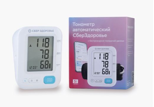 Автоматический тонометр, оснащенный функцией Bluetooth и индикатором аритмии, измеряет давление и в режиме реального времени передает показатели врачу СберЗдоровья. Кардиолог на связи 24/7 и сам позвонит пациенту, если показатели замеров будут отклоняться от нормы. В случае необходимости врач поможет вызвать скорую медицинскую помощь. Данные за весь период хранятся в «Дневнике наблюдений» мобильного приложения сервиса и доступны как врачу, так и пациенту. Помимо этого, тонометр может сам напомнить пользователю о необходимости измерить давление.