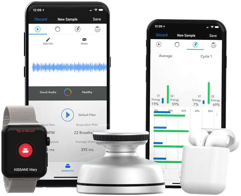 В свою очередь австралийская компания M3DICINE выпустила свой новый продукт Stethee, который стал первым в мире цифровым стетоскопом, использующим в своей работе алгоритмы искусственного интеллекта. Пользоваться этим устройством также просто, как и привычным всем врачам стетоскопом, но при прослушивании звуков сердца и легких система использует сложную систему усиления и технологии фильтрации. Вся информация в постоянном режиме захватывается и пересылается посредством Bluetooth в сопутствующее мобильное приложение, что позволяет врачу получить абсолютно новый уровень диагностических возможностей.
