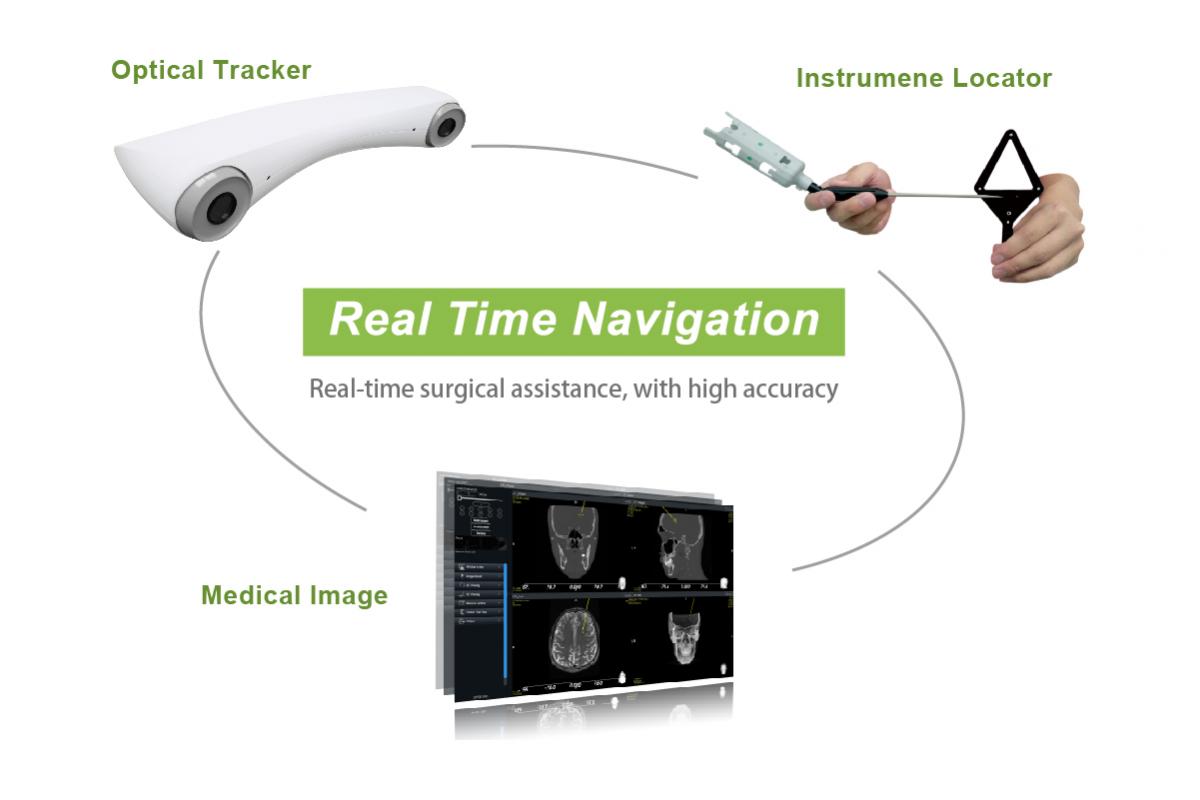 Система хирургического навигационного контроля является средством визуализации в процессе операции, позволяющим в режиме реального времени получать информацию об анатомических особенностях пациента, расположении инструментов, состоянии патологии в ходе операции. Это решение объединяет в себе "умные" медицинские технологии, позволяющие интегрировать медицинские изображения, полученные с помощью методов КТ и МРТ, непосредственно в живой операционный процесс с целью повышения точности работы врача. Система позволяет снизить количество повреждений тканей, повысить качество проведения операций и снизить риск осложнений после хирургической процедуры.