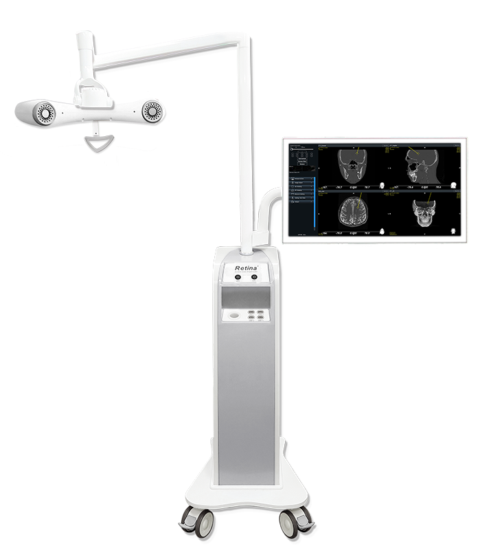 Система навигационного контроля Retina состоит из интегрируемых модулей, принадлежностей и программного обеспечения, дифференцируемого по областям применения. В нее входят оптический (лазерный) излучатель, трекер пациента и инструментарий, изменения положения которого отслеживается системой.