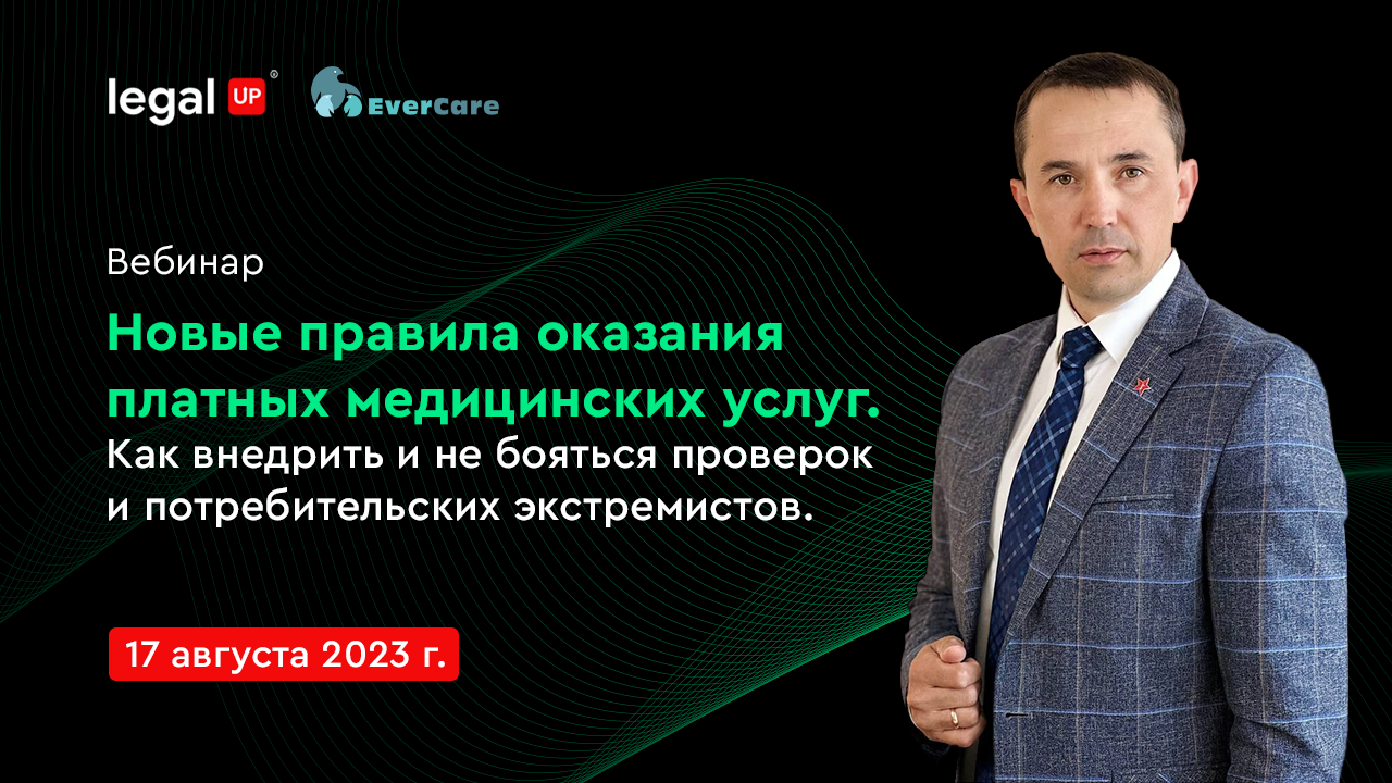Приглашаем Вас присоединиться к вебинару, который пройдет 17 августа в 11:00. Тема мероприятия: Новые правила оказания платных медицинских услуг. Как внедрить и не бояться проверок и потребительских экстремистов.