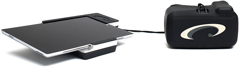Головное устройство подключается к планшету, который используется для инициирования теста и просмотра результатов.