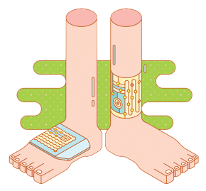 Исследователи корейского Института фундаментальных наук разработали гибкий электронный "пластырь" на кожу, который способен производить точные измерения уровня сахара в крови и при необходимости впрыскивать инсулин. Сенсор уровня сахара представляет собой двухслойную структуру из золотой сетки и графена, легированного золотом, при этом он работает, учитывая показания встроенных датчиков температуры кожи и уровня pH. Это миниатюрное устройство содержит также полимерные микроиголки для ввода инсулина, которые управляются за счет изменения их температуры с помощью встроенного нагревателя. Мониторинг сахара обеспечивается за счет анализа пота, который образуется под "пластырем".