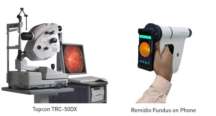 Система FOP была разработана индийским стартапом Remidio Innovative Solutions, которая смогла превратить стандартный смартфон в качественное диагностическое устройство. Система использует алгоритм искусственного интеллекта, который позволяет автоматизировать анализ полученного изображения и обладает 99.1%-чувствительностью при обнаружении диабетической ретинопатии.