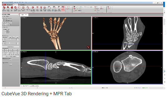 Томограф InReach поставляется вместе с рабочей станцией с высококонтрастным монитором. В состав поставки входит и собственный программный пакет CubeVue для визуализации изображений, которые может показывать срезы, трехмерные реконструкции, а также обладает всеми типичными функциями работы с изображениями, которые имею большие КТ-сканеры. Система совместима с DICOM/PACS.