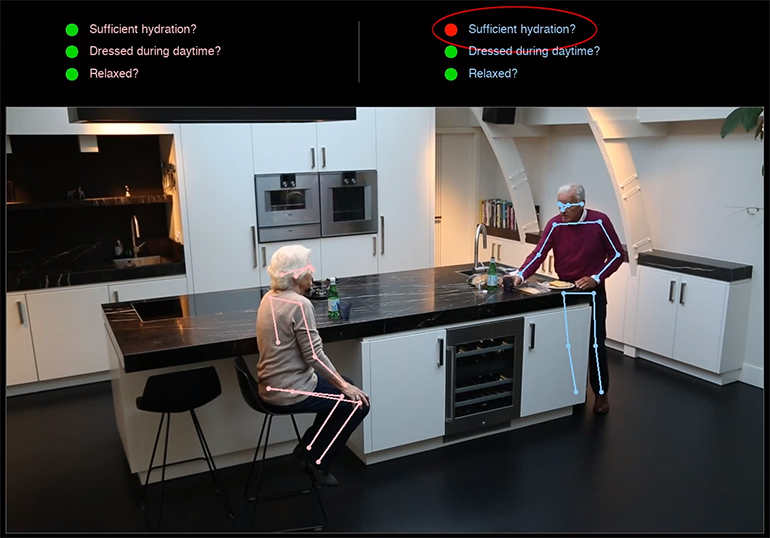 Голландская компания Kepler Vision Technologies использовала камеры, системы компьютерного зрения и распознавания образов и другие современные технологии для создания системы, которая способна получать некоторую базовую информацию о том, что делает человек и что происходит вокруг него. Это достаточно надежно работающее решение, которое может контролировать нескольких людей одновременно и определять их позу, язык тела, вид деятельности, включая еду, питье, ходьбу и курение, и сравнивать это с рекомендуемыми уровнями потребления жидкости, физических упражнений, сна и других видов деятельности. Причем система достаточно умна, чтобы различить, когда человек лежит на полу, а когда - на диване. При этом реальная видеоинформация нигде не сохраняется и никуда не передается, что гарантирует пожилым людям уверенность, что за ними никто не подсматривает.