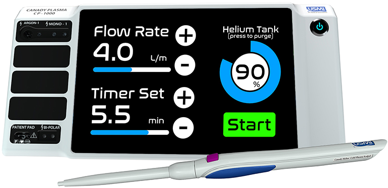 Недавно устройство компании US Medical Innovations, созданное на базе этой концепции, получило одобрение американских регулирующих органов (FDA) на проведение первого клинического исследования этой технологии. Устройство, получившее название Canady Plasma XL 1000, оснащено электрохирургическим скальпелем - похожим на авторучку аппликатором, излучающим струю холодной плазмы. Нацеливаясь только на клетки опухоли, этот прибор не должен оказывать значительного влияния на окружающие здоровые ткани, что уже было подтверждено при тестировании in vitro, in vivo.
