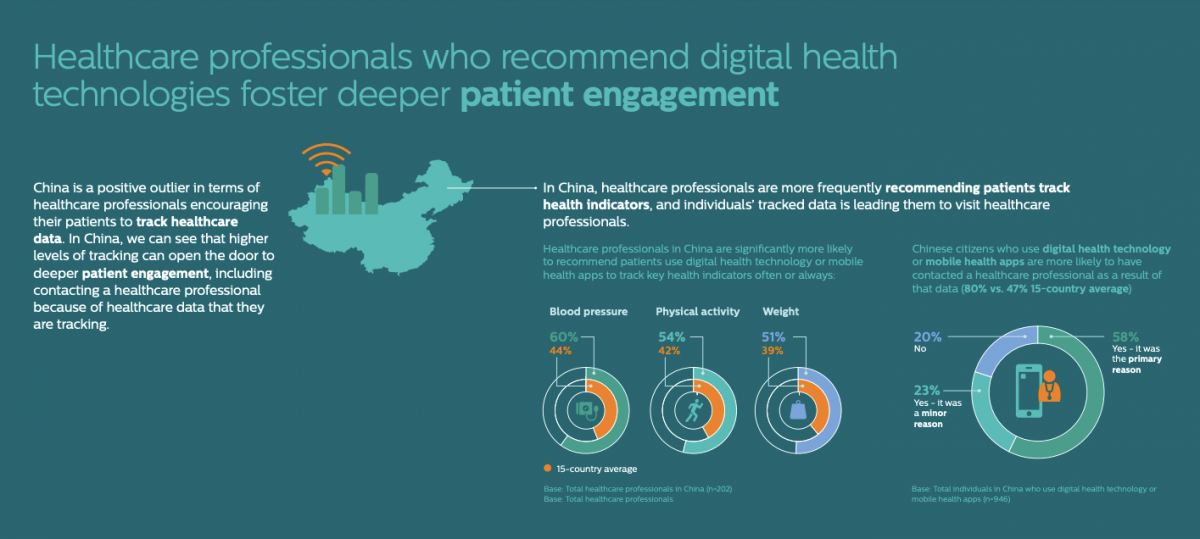 Опрос Philips описывает Китай и Саудовскую Аравию в первую очередь, а в некоторых случаях Индию и Россию как страны-первопроходцев в области использования и внедрения цифровых технологий здравоохранения, а также страны, опытом которых можно было бы воспользоваться и другим государствам.