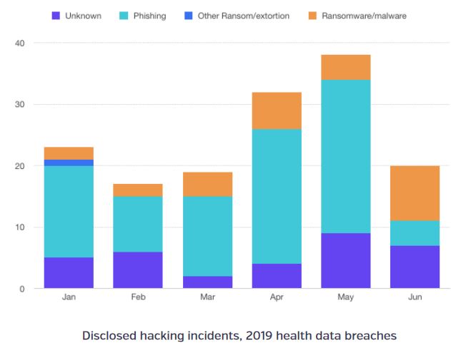 Компания Protenus в своем очередном отчете "PROTENUS 2019 MID-YEAR BREACH BAROMETER" отмечает, что за первое полугодие 2019 года количество утечек конфиденциальной медицинской информации в США в виде взломанных электронных медицинских карт существенно превысило показатели всего прошлого года (15.1 млн. штук). По сравнению с 2018 годом, когда Министерство здравоохранения и социальных служб США или средства массовой информации сообщили о 503 инцидентах, число таких инцидентов в текущем году было меньше - 285, что означает, что отдельные случаи нарушения затронули гораздо больше записей.