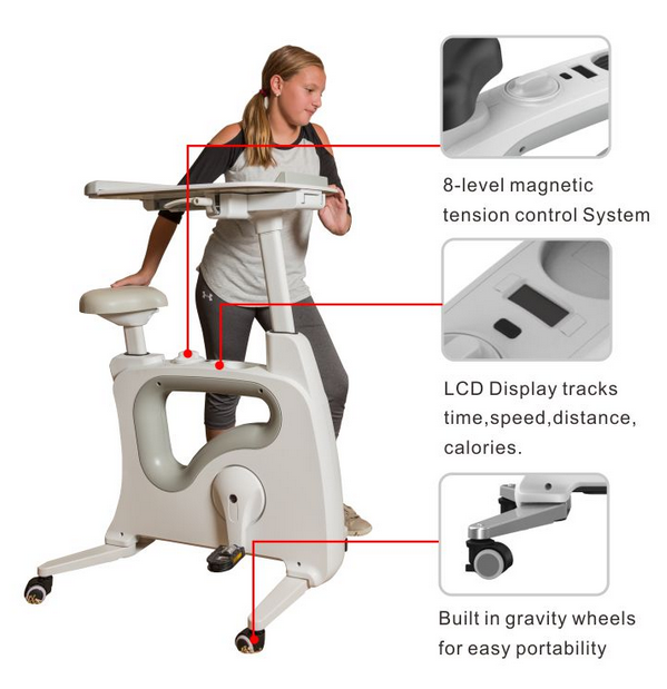 "Стол-велосипед" Loctek помогает дополнить длительное сидение безопасным и эффективным движением с низким воздействием, которое не мешает работе, но способствует улучшению циркуляции крови. Эргономичный дизайн FlexiSpot V9 включает регулируемый по высоте рабочий стол, который можно перемещать к себе и от себя, выбирая подходящее для себя его расположение. Стол даже можно поднять еще выше для того, чтобы использовать в качестве стоячего рабочего места, когда вы хотите дать отдохнуть своим ногам и ягодицам от педалей или сиденья. Причем это "офисное место" позволяет легко отслеживать "спортивный прогресс" пользователя во время работы с помощью встроенного ЖК-дисплея, на котором отображаются показания времени тренировки, количества оборотов педалей, "пройденного" расстояния, сожженные калории и скорость "перемещения". Среди других приятных и полезных качеств этого устройства необходимо отметить следующее: