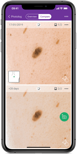 У взрослых людей более 70% меланом появляются в виде новых пятен или родинок на коже, а не в виде изменений ранее существовавшей родинки. Мы разработали технологию для поддержки этого важного элемента самоконтроля, наряду с отслеживанием отдельных родинок.