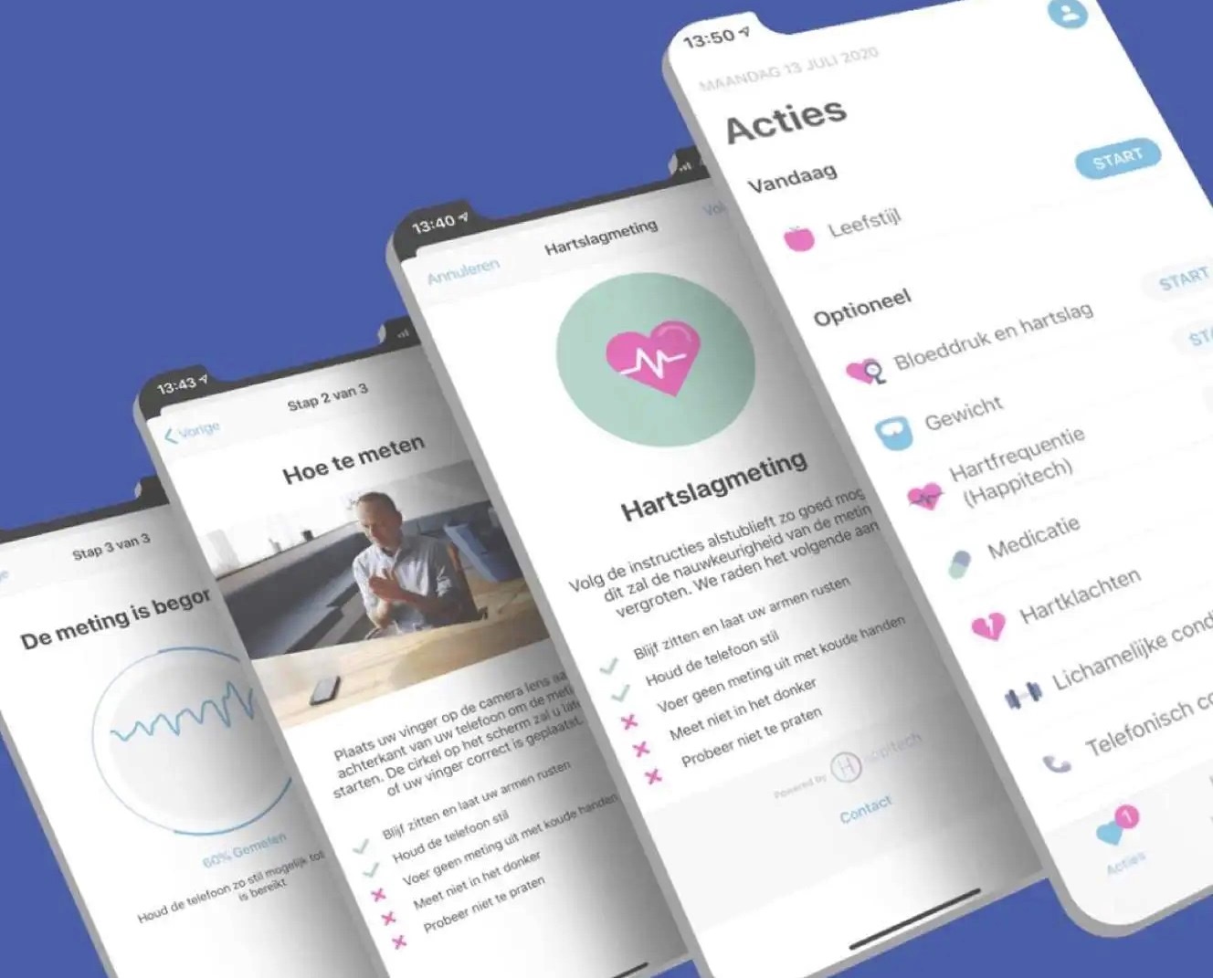 Хотя чаще всего такие параметры контролируются с помощью традиционных носимых устройств, которые необходимо приобрести пользователю, нидерландская компания Happitech предложила другой способ на основе программы, которая может контролировать пульс и обнаруживать любые ритмические аномалии через смартфон пользователя, обеспечивая обратную связь в реальном времени без необходимости в дополнительных устройствах.