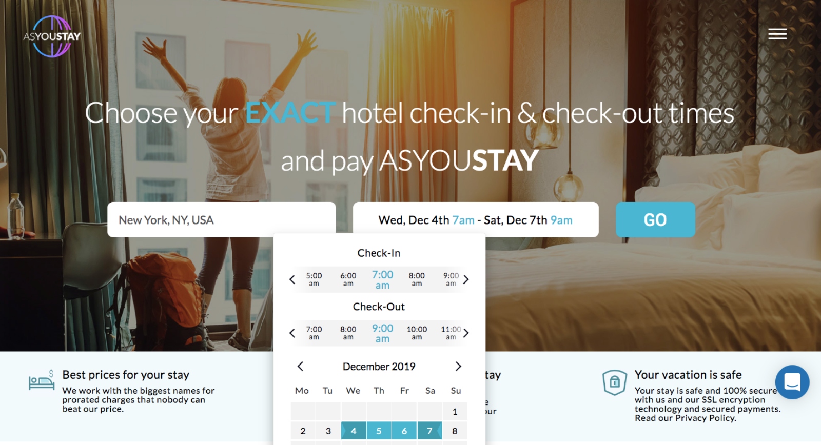 As You Stay позволяет путешественникам точно выбирать время заезда и выезда - и экономить деньги, оплачивая пропорциональные тарифы, если они прибывают поздно (или тратить меньше, если им нужен поздний выезд, но не полная дополнительная ночь). Не заставляя всех выехать и прибыть в одно и то же время, уборка в отеле может проводиться поэтапно, отели могут работать более эффективно, а гости могут свести к минимуму стояние в очереди в обычное время регистрации.