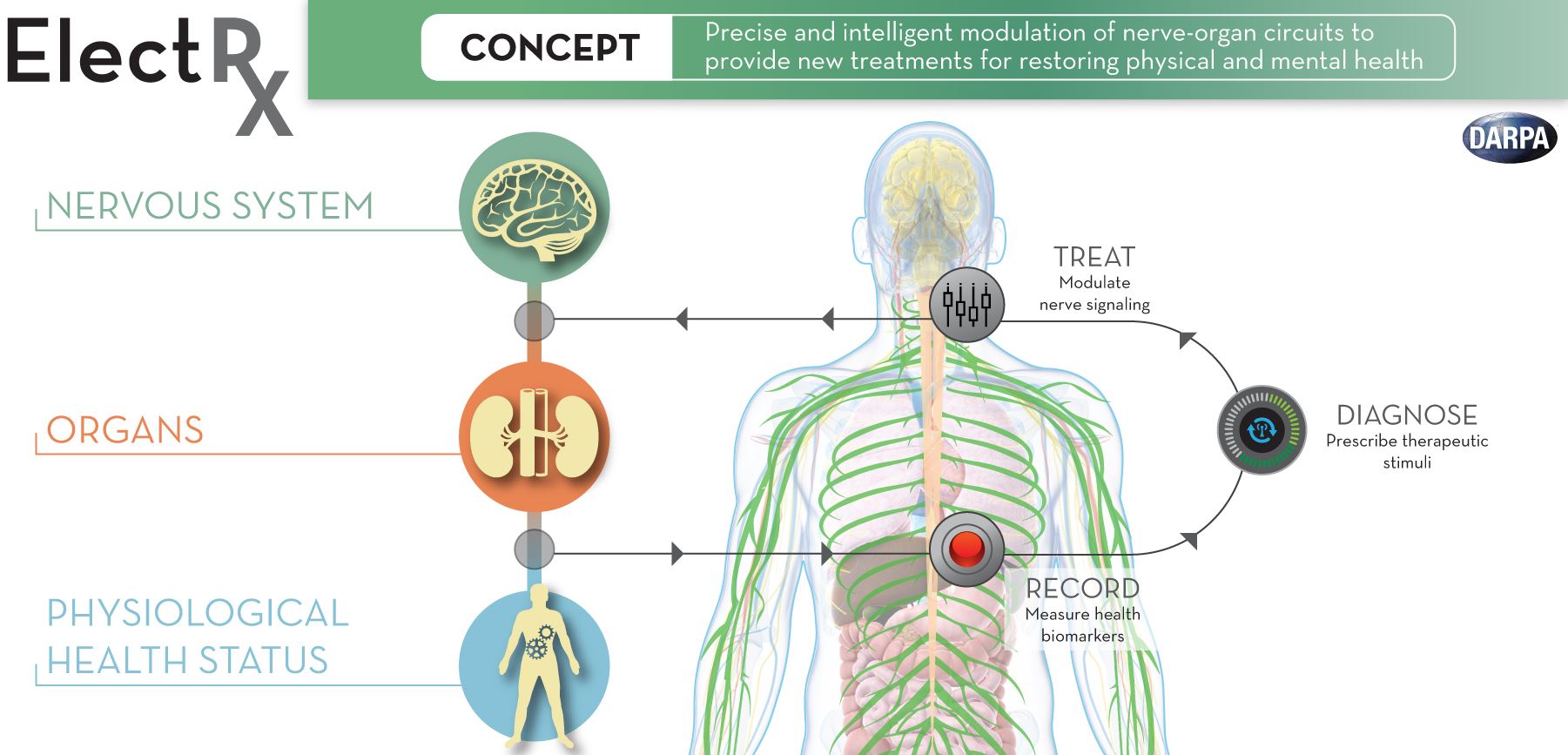 В середине 2014 года DARPA впервые объявило о подготовке проекта ElectRX. Цель - разработка замкнутой системы для лечения болезней путем модуляции активности периферических нервов. Ученые должны разработать систему и испытать ее в клинических условиях на людях, при этом система должна использоваться для лечения хронической боли, воспалительных заболеваний разного рода, посттравматического стресса и других болезней.