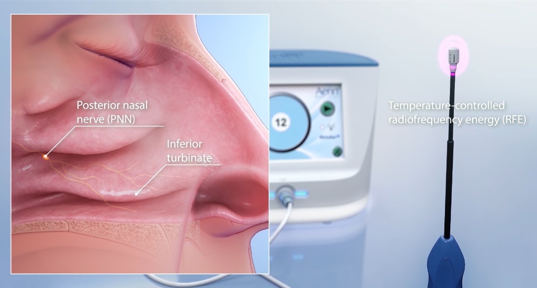 Американская компания Aerin Medical разработала неинвазивную радиочастотную технологию с регулируемой температурой RhinAer, которая за один сеанс эффективно устраняет причины ринореи (насморка), необходимость применения постназальных капель и заложенность носа, связанных с хроническим ринитом.