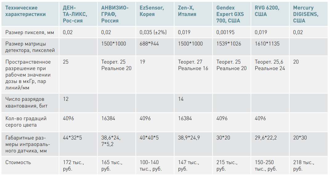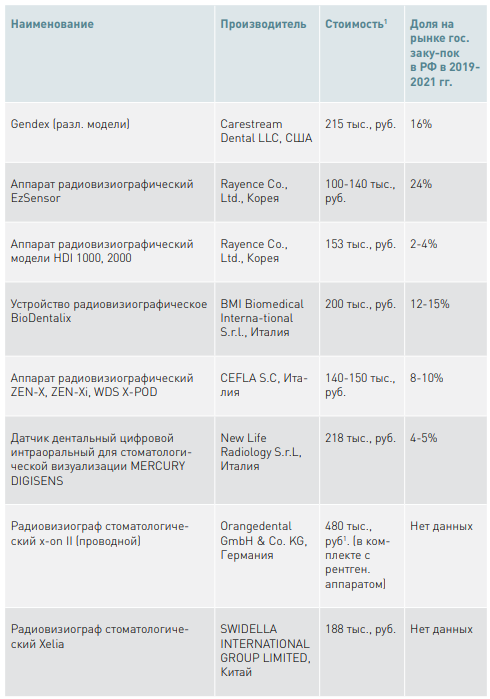 В настоящий момент на российском рынке не выявлены радиовизографические цифровые аппараты и комплексы с медицинским регистрационным удостоверением, использующие интраоральные датчики российского производства.
