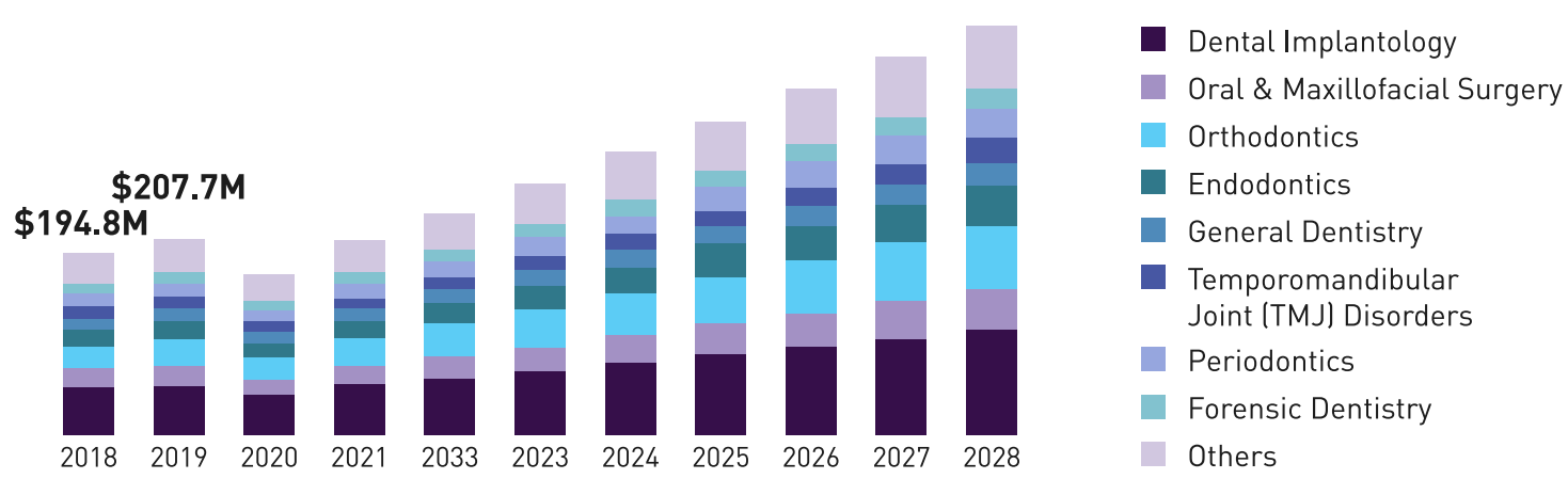 В целом на мировом рынке стоматологического рентгеновского оборудования прогнозируется высокий темп роста до 2028 года — 18,6%.