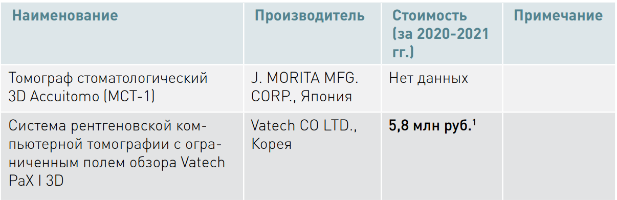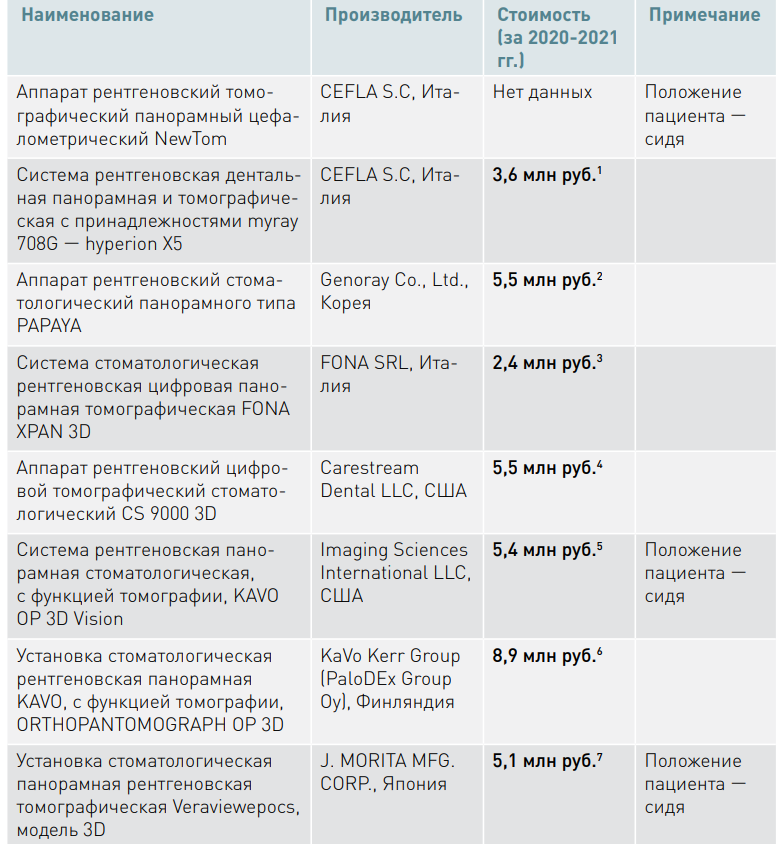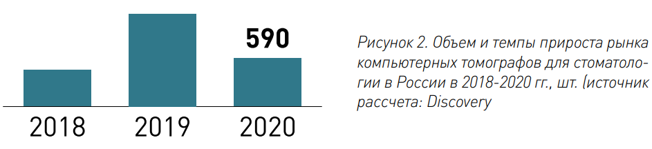 Объем импорта в Россию компьютерных томографов для стоматологии в 2020 году составил 590 шт1., учитывая объем государственных закупок в 2020 году, на долю государственных закупок стоматологических томографов приходится только 3% импорта.
