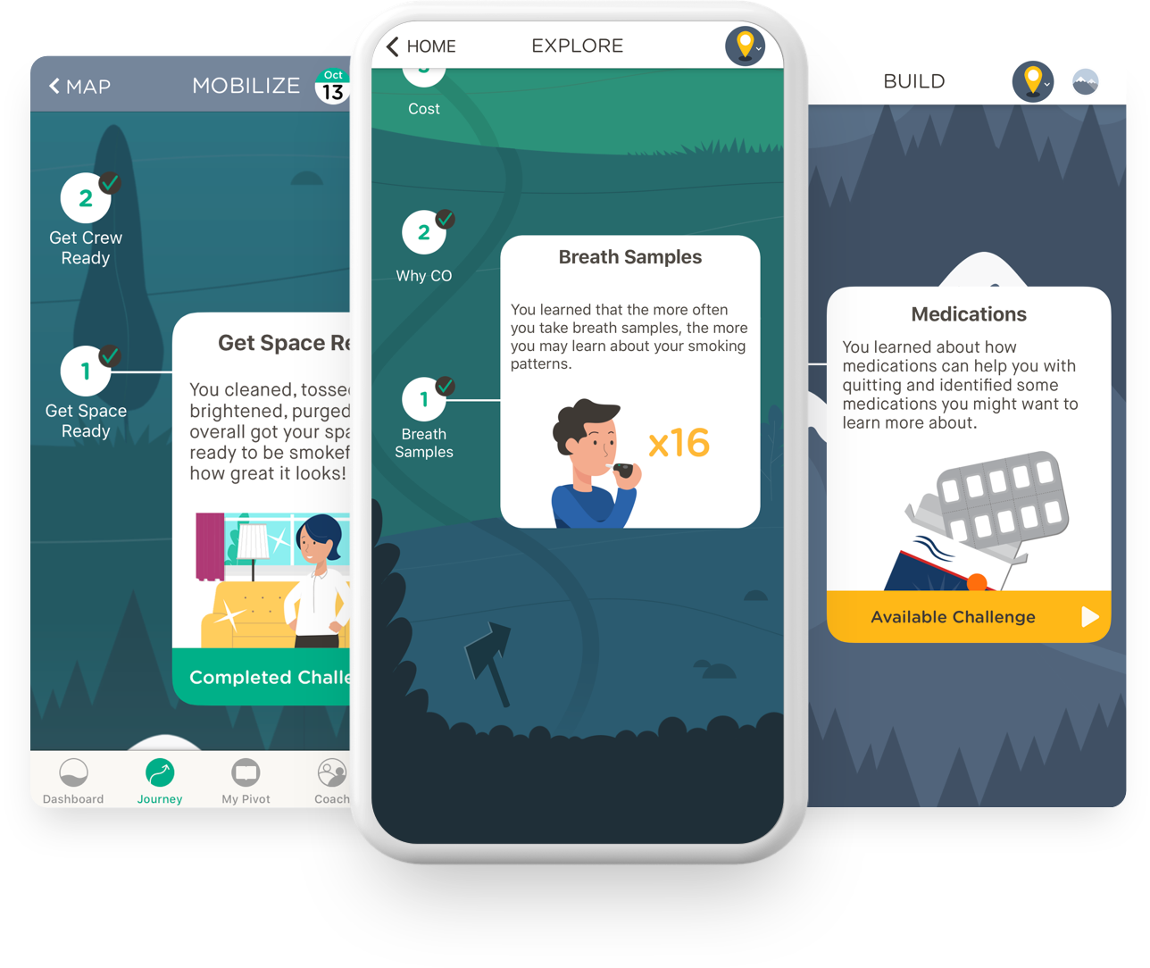 Приложение предназначено для того, чтобы усилить мотивацию курильщика к тому, чтобы бросить курение, и обеспечить ему долговременную поддержку. Оно включает в себя 58-недельную программу отказа от курения, поддерживаемую когнитивно-поведенческой терапией, фармакологическим обучением и участием реальных инструкторов. Данные компании говорят о том, что пользователи, которые синхронизируют устройство с приложением Pivot, имеют более чем в два раза больше шансов успешно отказаться от курения.