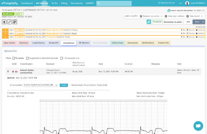 Эту систему можно использовать в сочетании с имплантируемыми петлевыми регистраторами для улучшения обнаружения аритмии и помощи электрофизиологам и их командам, чтобы избежать траты времени на рассмотрение событий, не требующих принятия мер.