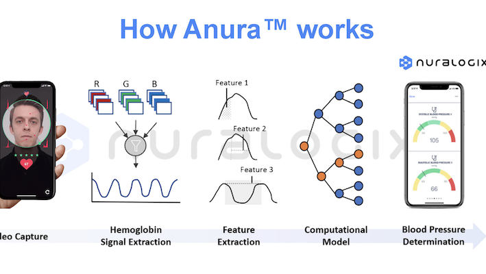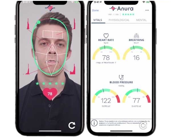 Канадская компания NuraLogix разработала интересное решение для мониторинга артериального давления - это приложение для смартфона, которое снимает показания в течение 30 секунд, причем без физического контакта. Приложение Anura также измеряет другие физические, физиологические и психологические показатели, включая частоту сердечных сокращений, уровень стресса, индекс массы тела и риск сердечно-сосудистых заболеваний с точностью до медицинского уровня (на основе научных и клинических исследований).
