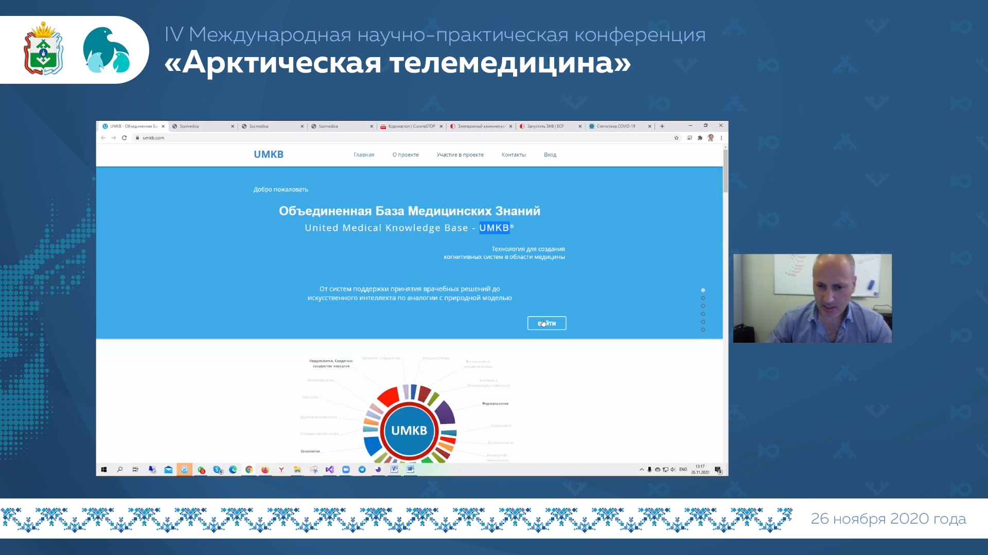 26 ноября 2020 года в онлайн формате состоялась IV Международная научно-практическая конференция «Арктическая телемедицина». Целью конференции было обсуждение вопросов использования информационных технологий для обеспечения доступности и качества медицинской помощи в условиях Крайнего Севера (Арктической зоны).