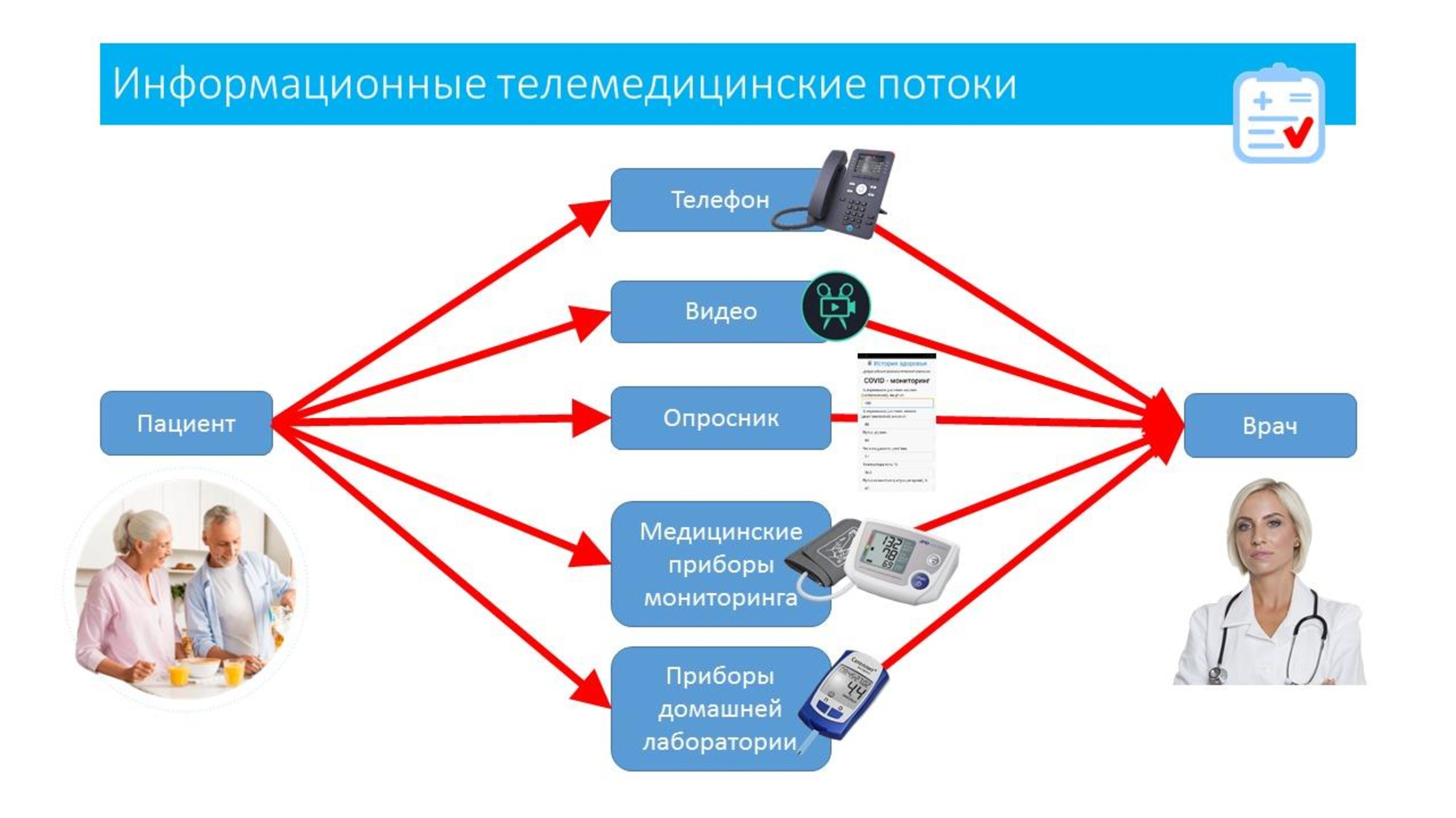 При этом встают задачи удаленного мониторинга и телемедицинского контроля: регулярный сбор медицинских данных и показателей самими амбулаторными больными, передача данных медицинским работникам, контроль динамики состояния, обратная связь, коррекция терапии, контроль поражения легких – организация КТ, своевременная госпитализация.