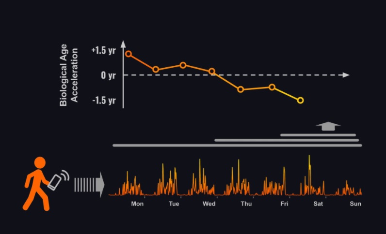 Схожий функционал заложен в GeroSense — систему искусственного интеллекта, обученную еженедельно определять фактический биологический возраст пользователя на основе характерных мотивов изменения интенсивности физической активности в течение суток.