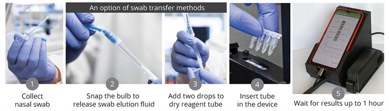 Эта новейшая технология основана на использовании метода петлевой изотермической амплификации (loop-mediated isothermal amplification, LAMP), похожего на ПЦР, но который не требует повторных циклов нагревания для достижения амплификации нуклеиновой кислоты. Это делает оборудование, необходимое для проведения анализа, гораздо более простым, чем громоздкие и дорогие термоциклеры, используемые для проведения ПЦР. Этот тест работает при постоянной температуре, поэтому он не требует времени на нагревание и охлаждение и дает результаты примерно через 30 минут. Будучи сравнительно недорогой и пригодной для использования в медицинских учреждениях, эта технология предназначена как для развитых, так и для развивающихся рынков.