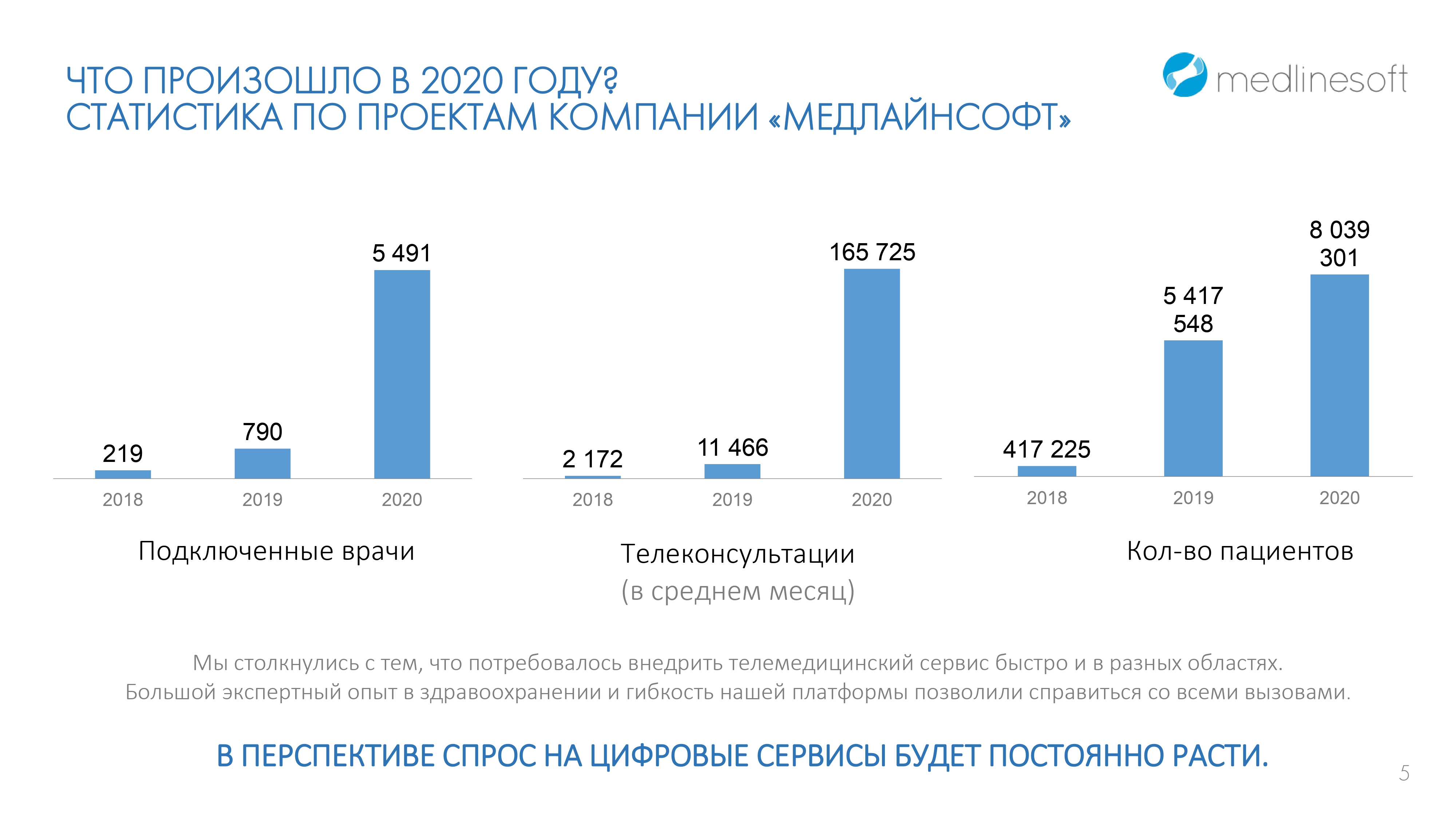 "Количество подключенных к ТМ-сервисам пользователей растет в последние три года, – признал Генцис. - Свыше 165 тыс. консультаций в месяц проводится только на нашей платформе "Медтера Телемедицина".