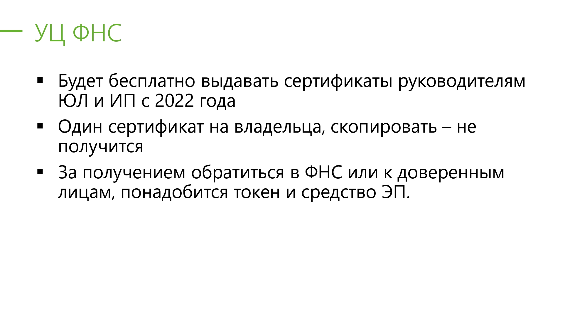 Руководитель удостоверяющего центра Сергей Казаков рассказал о том, как поменяется законодательство об электронной цифровой подписи с 1 января 2022 года. Он напомнил, что с будущего года эксклюзивное право выдавать сертификат ЭЦП руководителям организаций и ИП получит Федеральная налоговая служба. На директора медицинского центра или главного врача можно будет получить только один сертификат. Передать его бухгалтеру или специалисту по закупкам ЛПУ не получится. Зато появятся машиночитаемые доверенности – инструмент, который "свяжет" подпись физического лица и документ организации. Их формат и нормативная база сейчас разрабатывается.