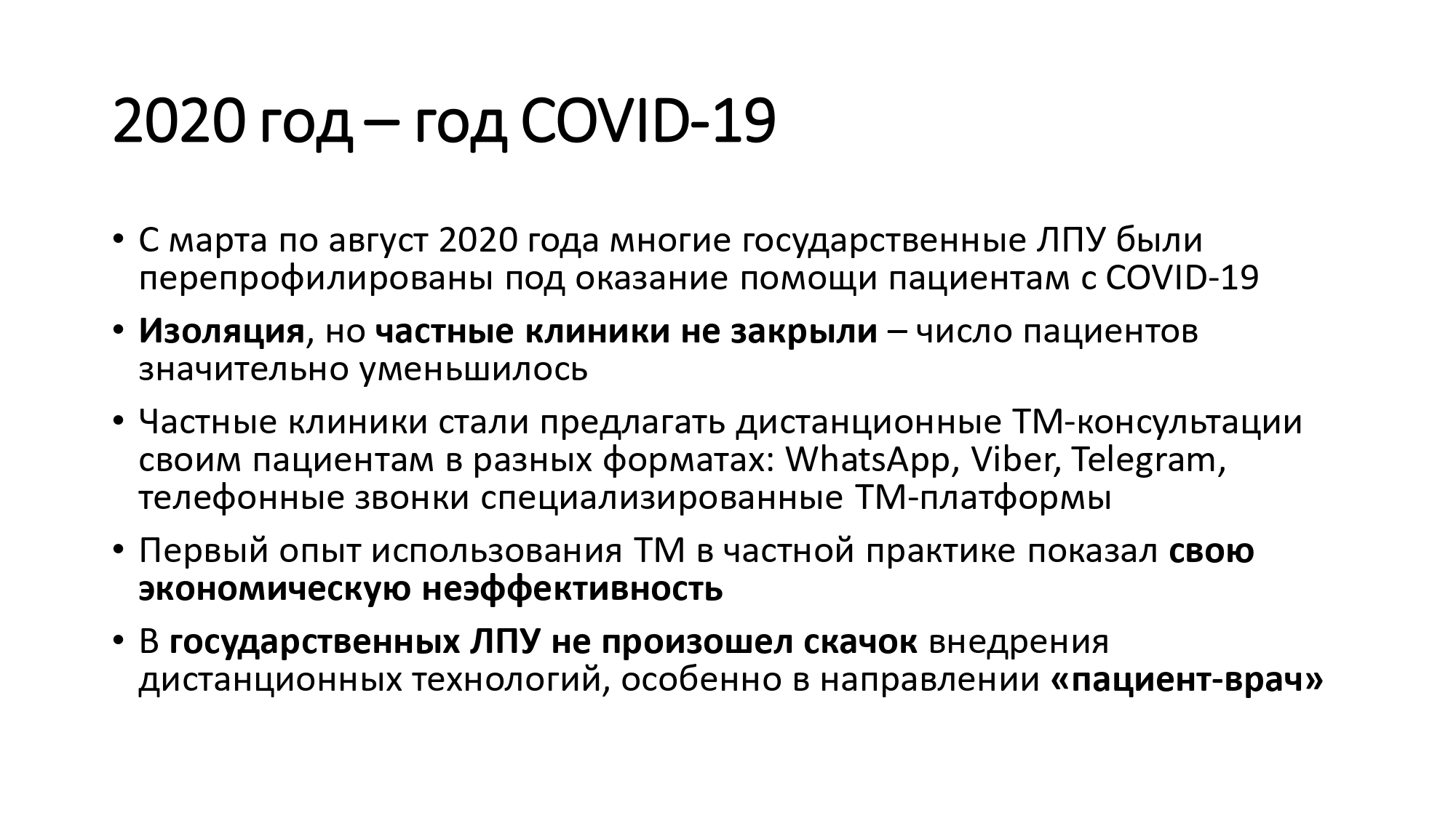 Благодаря пандемии COVID-19 многие пациенты получили личный опыт ТМ-консультаций и убедились в их преимуществах.