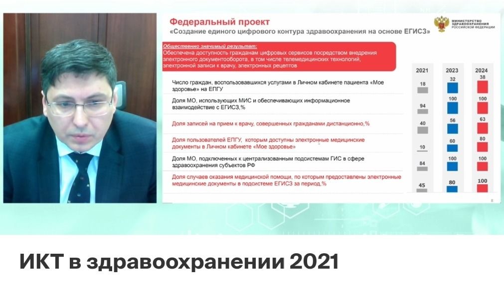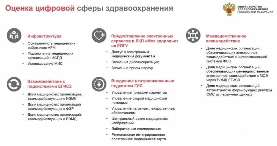 Как видно из презентации замминистра, отраслевое ведомство сделало ставку на общественно значимый результат — доступность гражданам цифровых сервисов, сместив акценты с количества медицинских организаций, которые предоставляют эти самые сервисы.